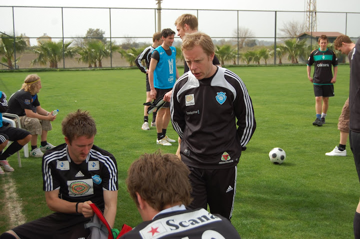 Da er vi hjemme igjen etter en fantastisk uke i Tyrkia.Kom i år som ifjor ned til fantastiske treningsforhold.Gressbanene er prima,boforhold og mat likeså. Så det er ingenting å utsette på opplegget.Kjørte 2 daglige treninger med vekt på rolletrening, oppspillsvarianter og defensiv samhandling.Og med den vinteren vi har hatt her hjemme,med få kamper og ingen treninger på stor bane,så var perioden for årets opphold i Tyrkia helt perfekt.Vi fikk en verdifull bekreftelse på hvordan vi ligger ann en knapp måned før seriestart.Vi har hatt mest fokus på det defensive i kampene,og notert både plusser og minuser. Aggresivitet, innsats og duellspillet er meget bra,men vi trenger enda litt tid på samhandlingen.Offensivt har vi også endel å gå på,der samhandlingsmøsteret må drilles. Det er jo også endel nye fjes i troppen som skal bli kjent med spillere og spillestil. Men ting ser bra ut. Vi hadde som sagt noen som var med på tur for første gang, unge gutter fra jr-laget og fra g16 laget. En kan bare glede seg over fremtiden, den ser lys ut. Så var Martin Knutsen endelig å se i svart og grønt. Han er en fin type som kommer til å bidra både på og utenfor banen for at vi skal utvikle oss videre mot 2 div. I uken som kommer får vi besøk av Viking 2 tirsdag og Klepp på lørdag. Så det blir virkelig spennende fremover.